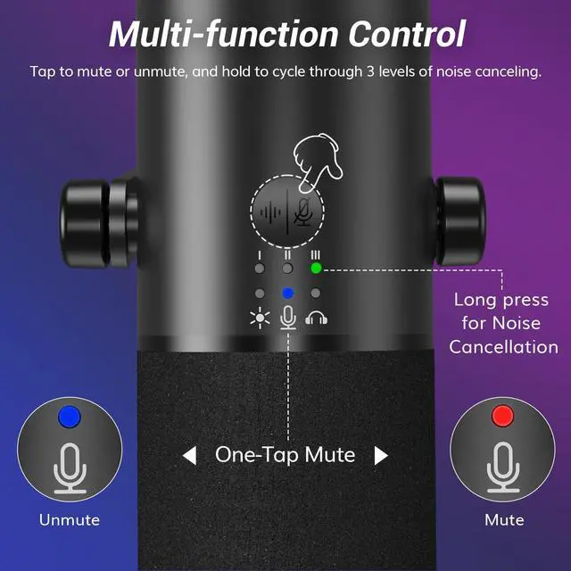 Long press for Level 3 Noise Reduction. Green light indicates ON.