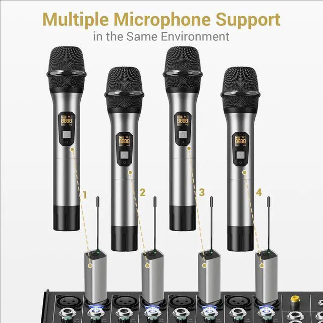 Designed for heavy-duty usage, this metal UHF handheld microphone features an LED display that shows the battery level, signal strength, and channel information for effortless operation.