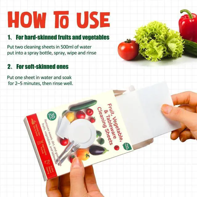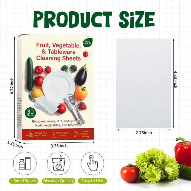 While cleaning, this fruit and vegetable wash sheets can reduce residues and dirt on the surface of fruits and vegetables, slow down spoilage, and help keep produce fresh longer. As a practical produce wash and cleaner, it allows purchased fruits and vegetables to maintain fresh taste longer, reducing waste.