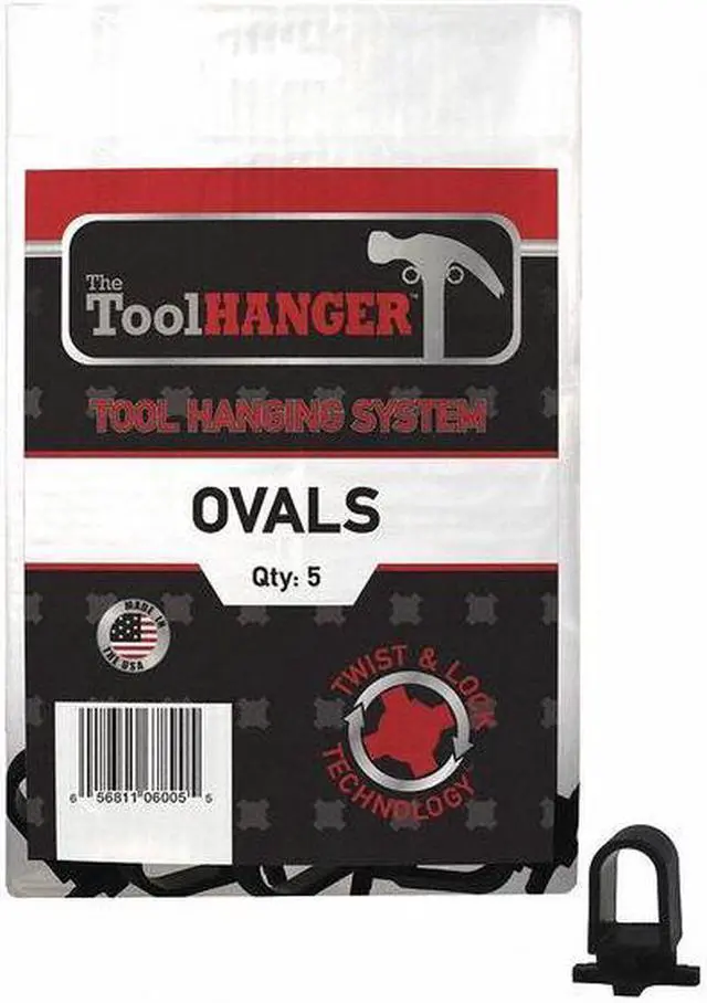 If you need a tool hanging rack for your tools, the ToolHanger 6005 Oval Hangers are the perfect solution. These plastic hangers can hold up to 5 lb. and come in a pack of 5. The black oval hangers have an overall length of 5 in., with a 1 in. height and 8 in. depth respectively. They are compatible with all types of Allen wrenches, paint brushes, scissors, screwdrivers and wood chisels. Each package comes with five ToolHanger 6005 Oval Hangers that can hold up to 5 lb each.