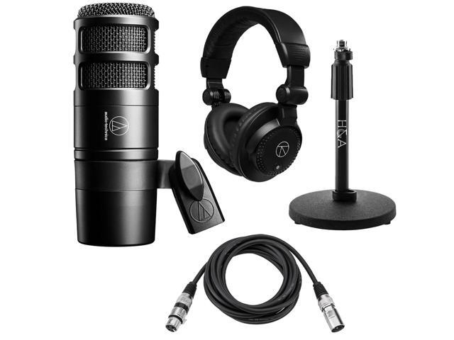 Audio-Technica AT2040 Hypercardioid Front-Address Dynamic Podcast Microphone, Bundle with H&A Tabletop Microphone Stand & Studio Monitor Headphones
