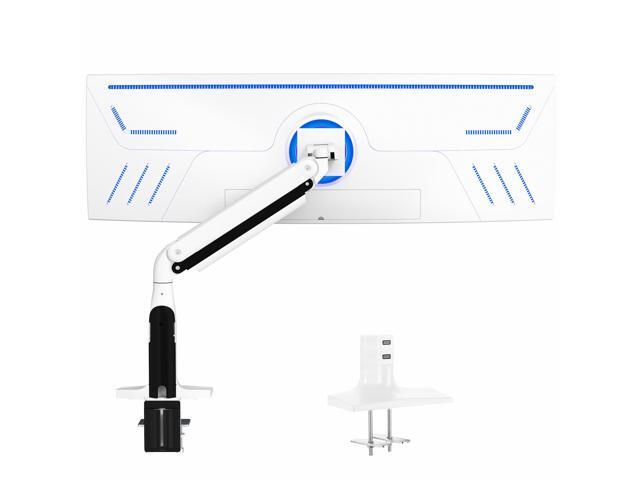 Single White Ultra Wide Monitor Pneumatic Spring Desk Mount, Max VESA 200x100