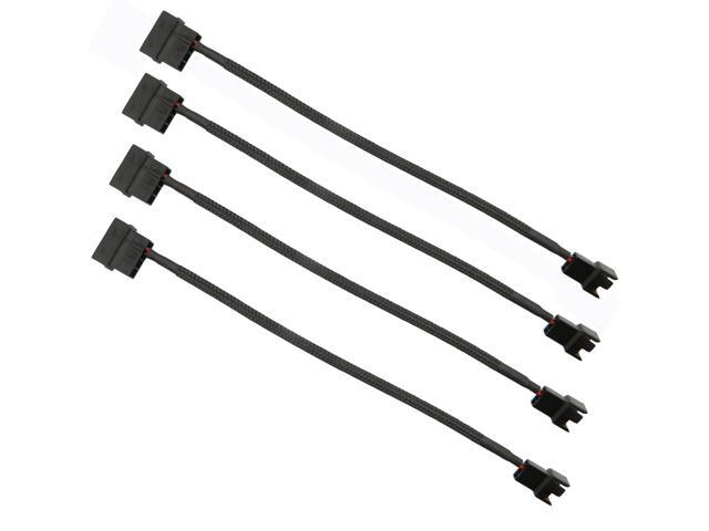BUCIER 4Pcs 4 Pin PWM Fan Splitter Adapter Cable, 4pin MOL-ex Fan Splitter Cable Extension Power Cable 1 to 1 12v Black Sleeved Braided Computer PC Case Cooler Fan Power Splitter Adapter Cable