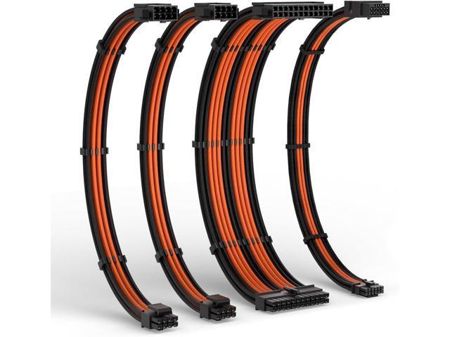 PSU Cable Extension Kit 30CM Length with Cable Combs 1x24Pin/1x8Pin(4+4) EPS/2x8Pin(6P+2P) PCI-E/PC Sleeved Cable for ATX Power Supply(Black & Grey)