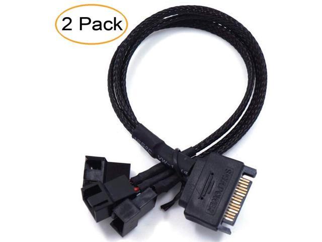 BUCIER SATA to 3 x 3 Pin / 4 Pin PMW 12V PC Case Fan Power Adapter Cable, 3-Pin or 4-Pin (PWM Connector) to 15 Pin SATA Computer Cooler Cooling Fan Splitter Y Power Cable 2-Pack