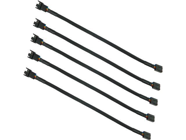 BUCIER PWM Fan Extension Cable - 10.5 inch PC Fan Extension Cable Compatible with ATX Case 3 Pin & 4 Pin Cooling Fans. Durable Black Nylon Braided Case Fan Extension Cable (5 Pack)
