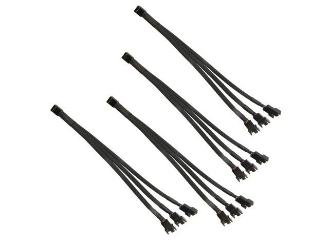BUCIER 4pcs 4 Pin PWM Fan Splitter Cable, Black Sleeved Case Fan Braided Adapter Cable 1 to 3 Converter Y Splitter for Computer PC CPU Cooling Fan ATX Case 4-Pin/3-Pin Extension Power Cable 10 Inches