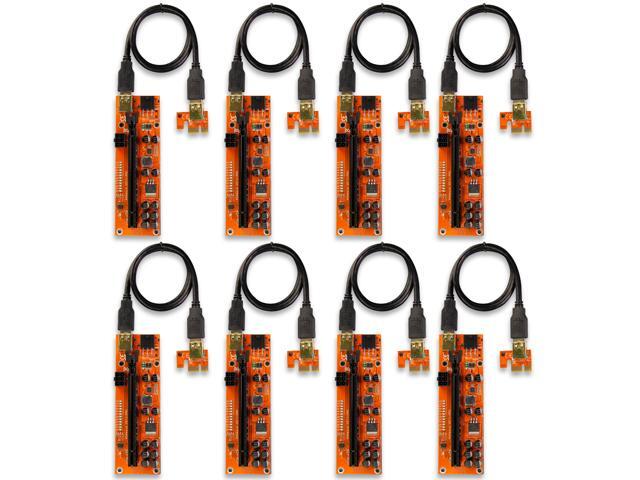 AAAwave PCIE Riser VER 011 Pro 1x to 16x Graphic Extension for GPU Mining USB Riser Powered Adapter Card, 60cm USB 3.0 Cable, 10 Solid Capacitors, 2x 6PIN - Pack of 8