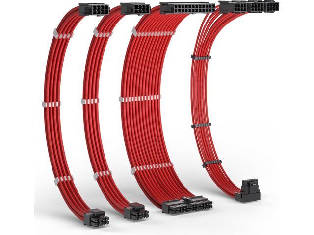 Redragon GCP07 Power Extension Cable Kit - 1x24 Pin, 1x90 Degree 16 Pin, 2x8Pin Sleeved Cable for ATX Power Supply, 30CM Length with Cable Combs, Red