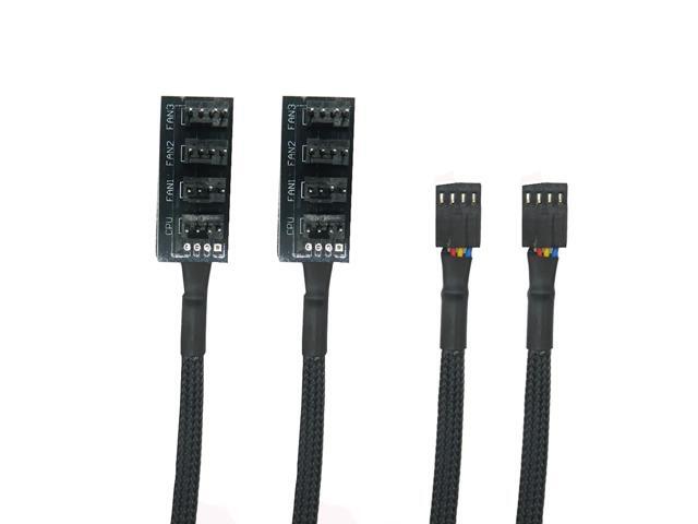 BUCIER 2PCS PWM Fan Hub Splitter 4-Pin/3-Pin pc 4 Way Splitter, Cooling Fans Power Cable 1 to 4 Way PC Case Internal Motherboard Extension Cable
