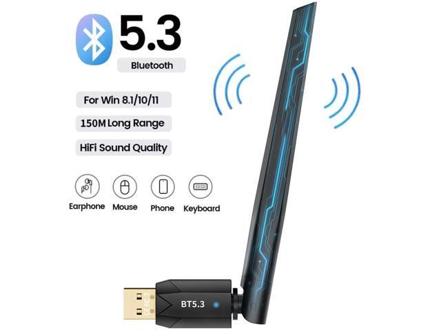 USB Bluetooth Adapter for PC, Plug and Play Bluetooth 5.3 Dongle, 328FT/100M Long Distance Wireless Transfer USB Bluetooth 5.3 Adapter for Desktop Laptop PC with Windows 11/10/8.1 (Black)
