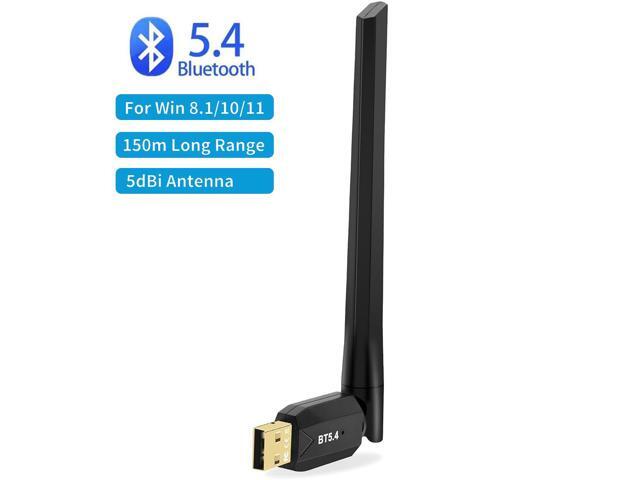 Bluetooth 5.4 Adapter for PC, 2x5dBi USB Bluetooth Dongle BT5.4 EDR Adapter for Laptop Keyboard Mouse Headsets Speakers, 150M Long Range Bluetooth USB Adapter Supports Windows 11/10/8.1(Plug and Play)