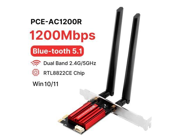 DERAPID Dual-Band WiFi Adapter RTL8822CE Chipset PCI-E Wireless Bluetooth 5.1 High-Gain Antennas Enhanced Wireless Connectivity Compatible with Win 7/10/11