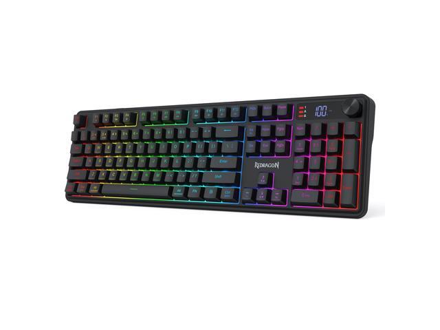 Redragon K526 PRO RGB Wireless Membrane Gaming Keyboard, 104 Keys Mechanical-Feel Keyboard w/LED Info Display, Media/Backlit Knob Control, Smooth Linear Switch & Software Supported