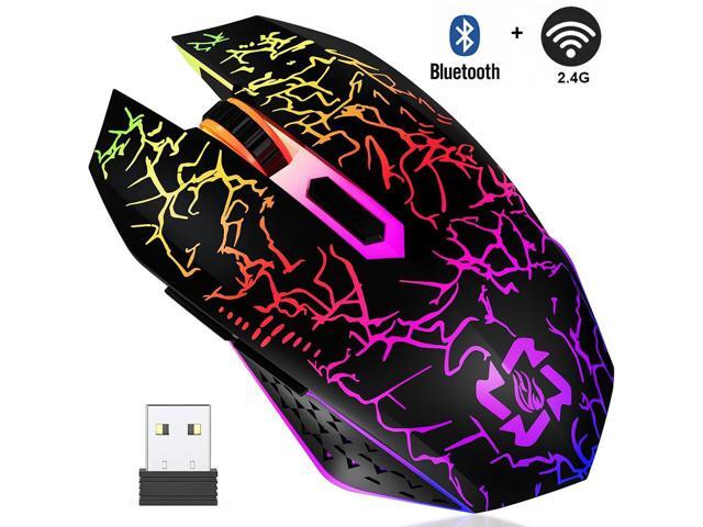 Wireless Gaming Mouse High precision, Optical Owl-Eye Sensor (1200/2400/3200 DPI), 7-Color LED Rainbow Luminous, 7 programmable Keys, Rechargeable Wireless Bluetooth Mouse, USB giyqxHw