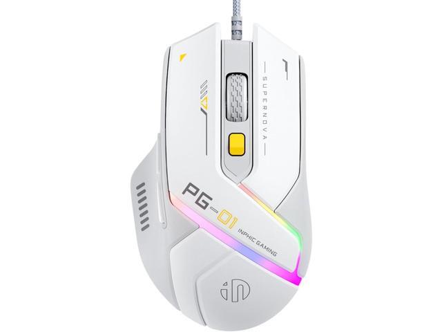 INPHIC Wired Computer Gaming Mouse Ergonomic, 12800 DPI High-Precision, 6 Programmable Buttons, RGB Backlit for Gaming - White Gray