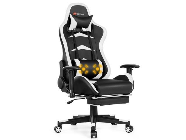 Goplus Massage Gaming Chair Reclining Swivel Racing Office Chair with Footrest White