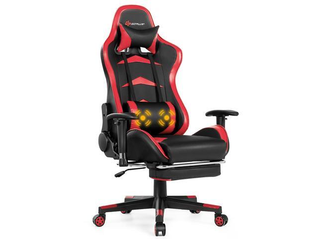 Goplus Massage Gaming Chair Reclining Swivel Racing Office Chair with Footrest Red
