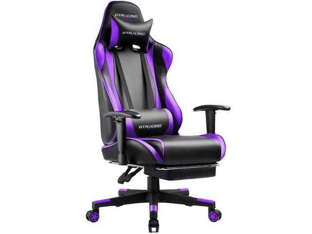 GTRACING Footrest, Ergonomic Computer Game Desk, Reclining Gamer Chair Seat Height Adjustment Swivel Rocker with Headrest and Lumbar, Purple