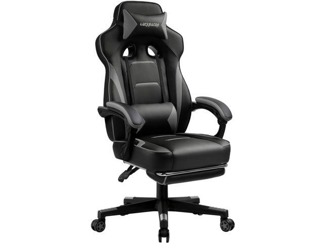 LUCKRACER Gaming Chair with Legrest, Ergonomic Computer Chair with Footrest Gamer Chair PU Leather Swivel Lumbar Support Racing Style E-Sports Game Chairs by GTRACING (GREY)
