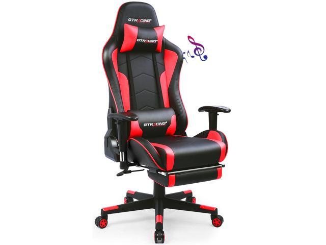 GTRACING Gaming Chair with Footrest and Bluetooth Speakers Music Video Game Chair Heavy Duty Ergonomic Computer Office Desk Chair ( Red)