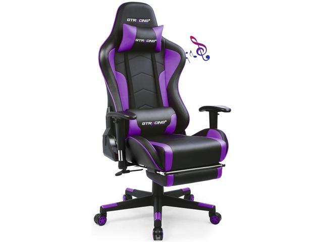 GTRACING Gaming Chair with Footrest and Bluetooth Speakers Music Video Game Chair Heavy Duty Ergonomic Computer Office Desk Chair (Purple)