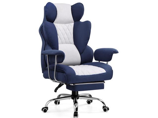 GTRACING Gaming Chair,Office Chair with Pocket Spring Lumbar Support, Ergonomic Comfortable Wide Office Desk Computer Chair with Outward Fixed Soft Armrests and Footrest (Fabric,Dark blue)
