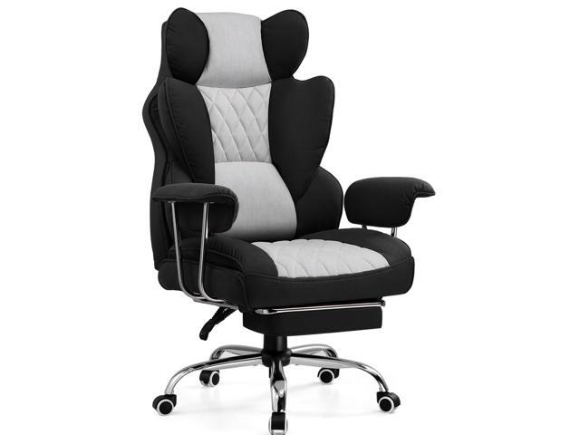 GTRACING Gaming Chair with Footrest, Fabric Breathable Big and Tall Ergonomic Computer Chair 350 lbs with Adjustable Lumbar Support and Recliner, High Back Game Chair for Office Gaming (Black)