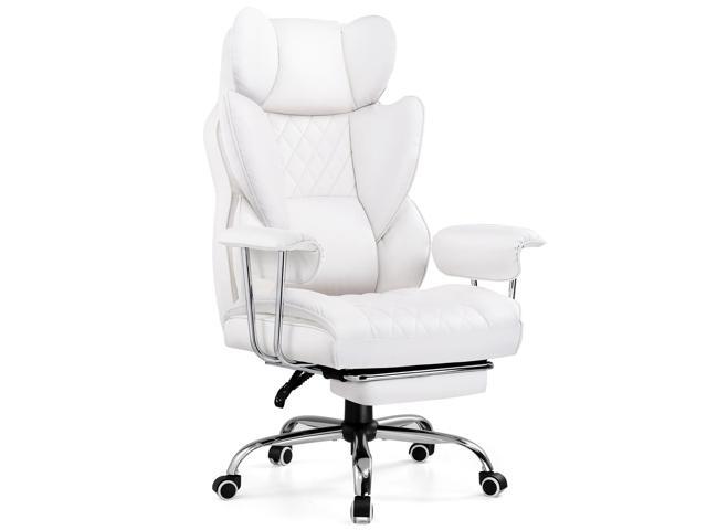 GTRACING Gaming Chair,Office Chair with Pocket Spring Lumbar Support, Ergonomic Comfortable Wide Office Desk Computer Chair with Outward Fixed Soft Armrests and Footrest (PU Leather, White)