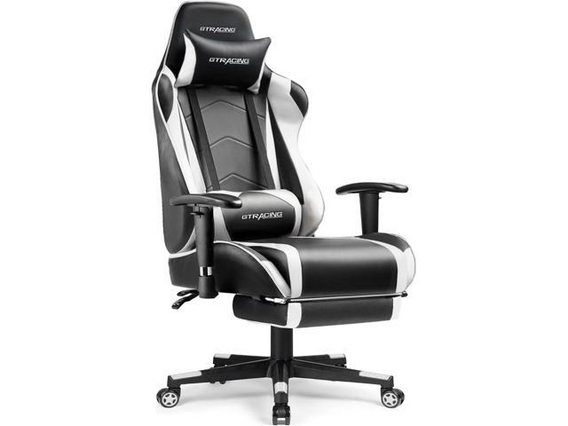 GTRACING Gaming Chair with Footrest, High Back Computer Chair Ergonomic Game Desk Chair Racing Executive Adjustable Swivel Rocker with Headrest and Lumbar Support (White)