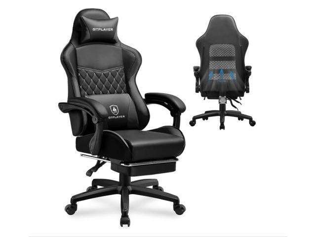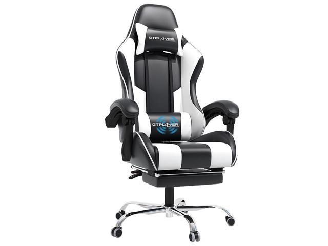GTPLAYER Gaming Chair with Bluetooth Speakers, Ergonomic Office Chair with Footrest & Lumbar Support, Height Adjustable Swivel Video Game Chair for Adults, 300lb Max Black