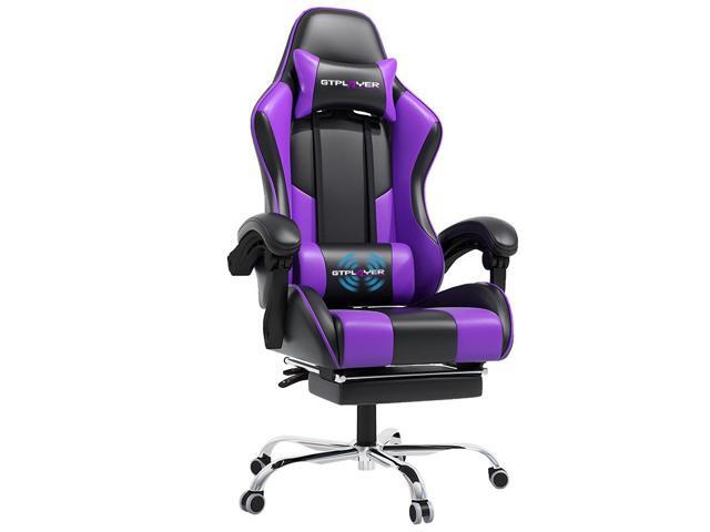 GTPLAYER Gaming Chair, Computer Chair with Footrest and Lumbar Support, Height Adjustable Game Chair with 360°-Swivel Seat and Headrest and for Office or Gaming (White) Purple