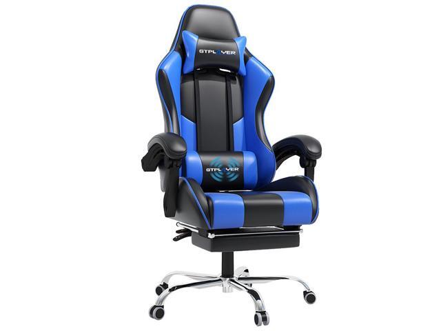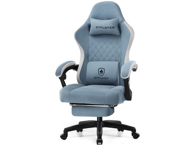 GTPLAYER Gaming Chair, Computer Chair with Footrest and Lumbar Support, Height Adjustable Game Chair with 360°-Swivel Seat and Headrest and for Office or Gaming (White) Blue