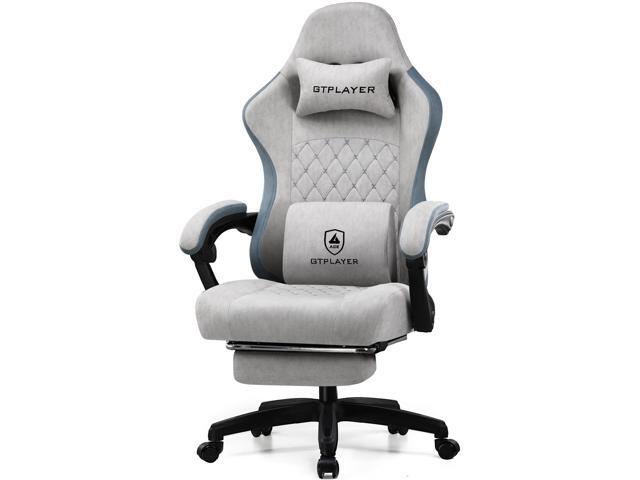 GTPLAYER Gaming Chair, Computer Chair with Footrest and Lumbar Support, Height Adjustable Game Chair with 360°-Swivel Seat and Headrest and for Office or Gaming (Fabric, Black & Light Gray)