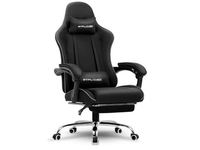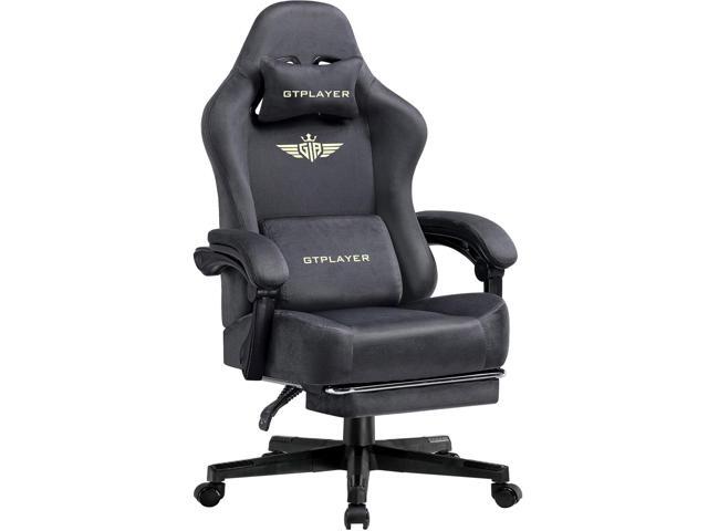 GTPLAYER Gaming Chair with Footrest, Computer Chair with and Lumbar Support, Height Adjustable Game Chair with 360°-Swivel Seat and Headrest and for Office or Gaming (Black-Fabric)
