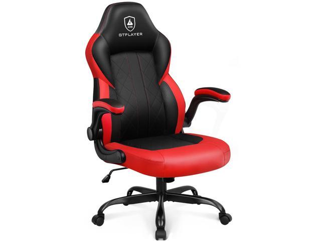 GTPLAYER Computer Gaming Chair, Ergonomic Video Gaming Chair with Flip-Up Armrests and Adjustable Height, Comfortable Office Desk Chairs with Built-in Lumbar Support, Recliner with 360°Swivel (Red)