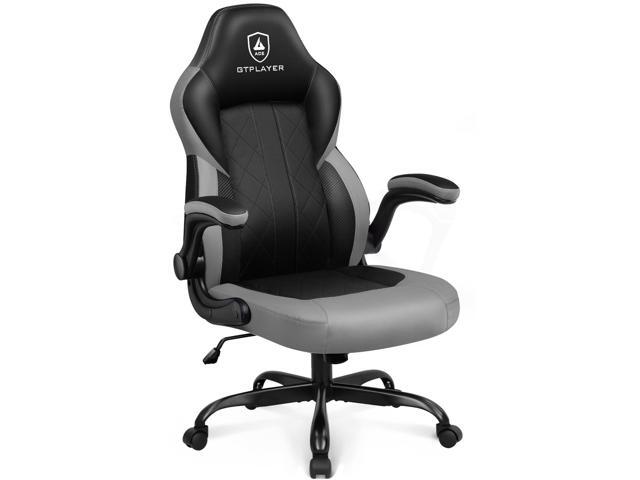 GTPLAYER Computer Gaming Chair, Ergonomic Video Gaming Chair with Flip-Up Armrests and Adjustable Height, Comfortable Office Desk Chairs with Built-in Lumbar Support, Recliner with 360°Swivel (Grey)