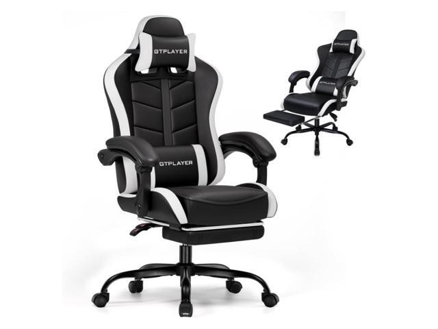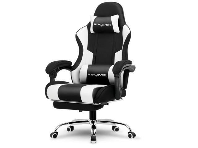 GTPLAYER Gaming Chair, Computer Chair with Footrest and Lumbar Support, Height Adjustable Game Chair with 360°-Swivel Seat and Headrest and for Office or Gaming (White)