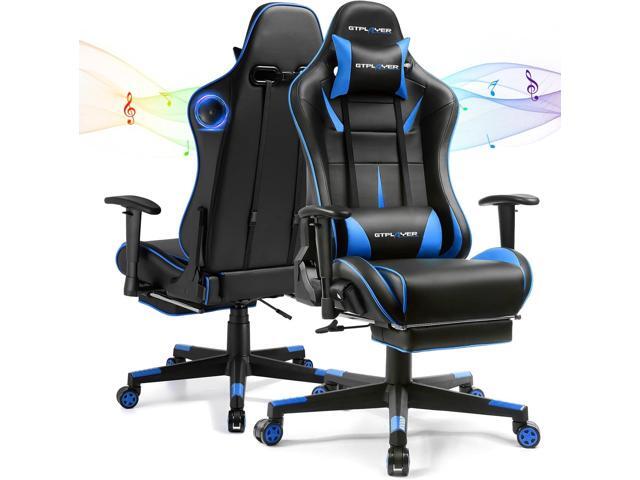 GTPLAYER Gaming Chair with Bluetooth Speakers, Ergonomic Office Chair with Footrest & Lumbar Support, Height Adjustable Swivel Video Game Chair for Adults, 300lb Max Blue