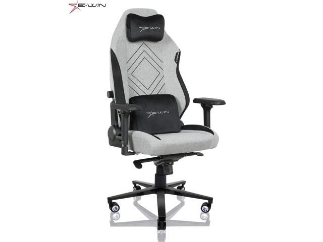 E-WIN Gaming Chair Breathable Fabric Office Chair with Magnetic Head Pillow and Lumbar Support High Back Ergonomic Computer Chair,Light Grey