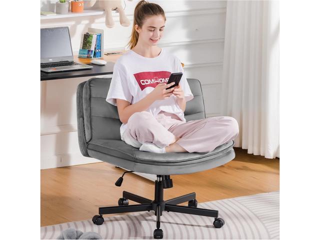 GTPLAYER Cross Legged Office Chair with Wheels Armless Office Desk Chair, Modern Vanity Computer Task Chairs for Home Bedroom, Comfortable Wide Seat for Lower Back Pain Relief/PU Leahter (Gray Velvet)