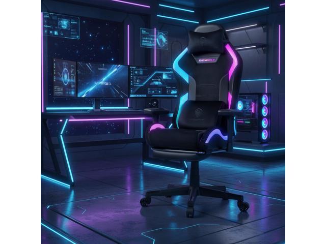 Dowinx LED Gaming Chair with Lumbar Support for Big and Tall, 3D Adjustable Armrests&Headrest, RGB Game Chair for Video Gamer, Fabric Computer Chair for Adults&Teens, 66D2 Black