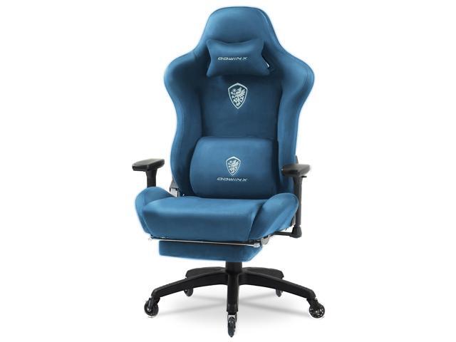 Dowinx Gaming Chair,Breathable Suede Fabric Game Chair with 3D Armrest and PU Wheels,Big and Tall Gaming Chair with Massage Lumbar Support,Ergonomic Computer Chair with Footrest, Blue