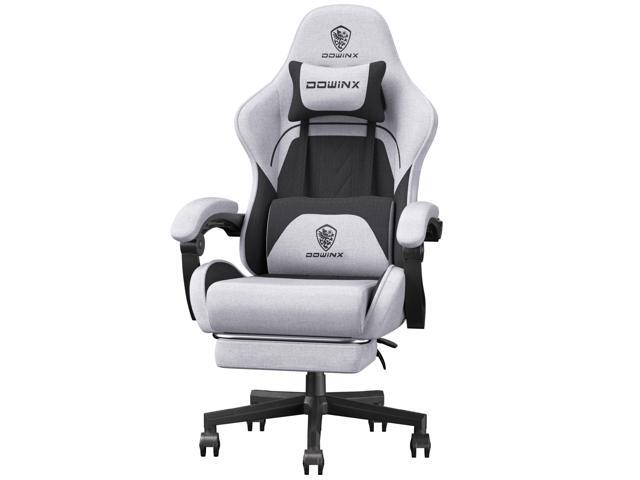 Dowinx Gaming Chair with Pocket Spring Cushion, Ergonomic Computer Chair with Footrest and Lumbar Support for Office or Gaming, Grey