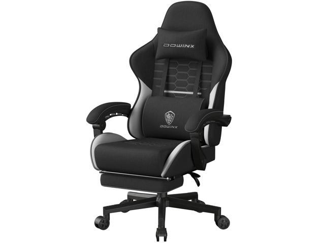 Dowinx Gaming Chair Fabric with Pocket Spring Cushion, High Back Ergonomic Computer Chair with Footrest and Massage Lumbar Support, Ideal for Office Gaming, Supports Up to 300LBS, Black