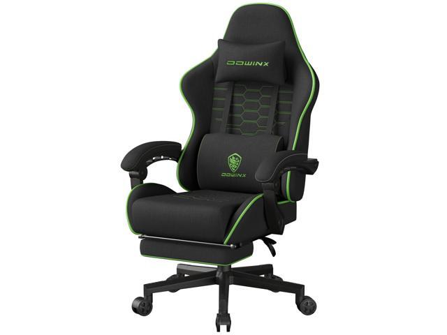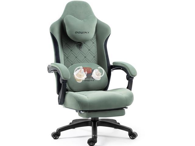 Dowinx Gaming Chair Fabric Big and Tall with Pocket Spring Cushion, Massage Game Chair Cloth with Headrest, Ergonomic Computer Chair with Footrest 350LBS, Black Green
