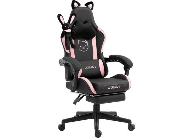 Dowinx Cute Cat-Ear Gaming Chair with Massaging Lumbar Support, Ergonomic Computer Gaming Chair for Girl and Adults, Reclining Comfort Game Chair with Footrest, Black Bunny