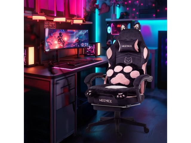 Gaming Chair Cute with Cat Ears and Paw Lumbar Seat Cushion, Ergonomic Computer Chair with Footrest, Reclining PC Game Chair for Girls, Computer Chair 300lbs for Adult, Black&Pink