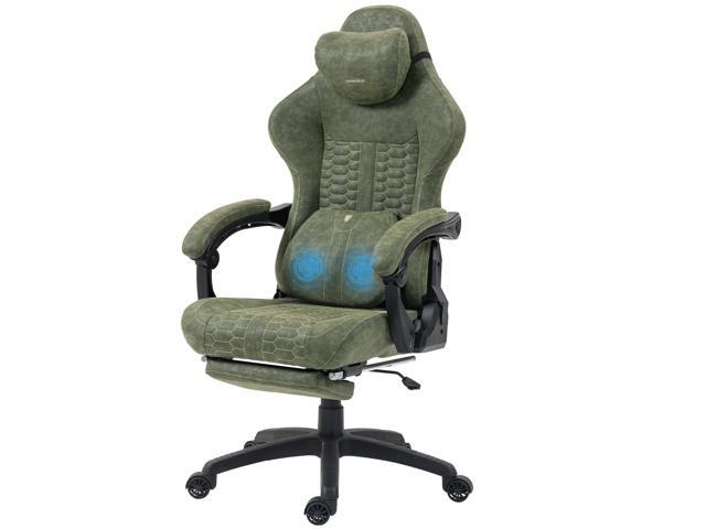 Dowinx Gaming Chair Big and Tall with Dual-Point Massage Lumbar Support, Video Game Chairs for Adults with Footrest, Ergonomic Computer Chair High Back 360° Swivel, PU Leather Recliner 400LBS, Green