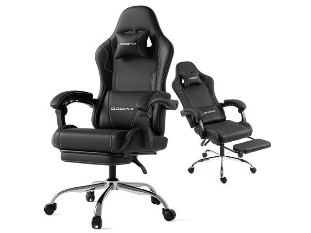 Dowinx Gaming Chair PU Leather with Pocket Spring Cushion, Ergonomic Office Chair with Massage Lumbar Support & Adjustable Headrest, Swivel PC Game Chair for Video gamer, Recliner 330lbs with Footrest